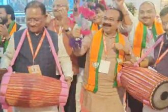 छत्तीसगढ़ी लोकगीतों पर थिरके भाजपा सांसद-विधायक, सीएम साय और प्रदेश प्रभारी नबीन ने बजाया मांदर