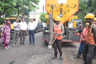 भोपाल में जैट पेचर तकनीक से सड़कों के गड्ढे भरने के कार्य का प्रदर्शन