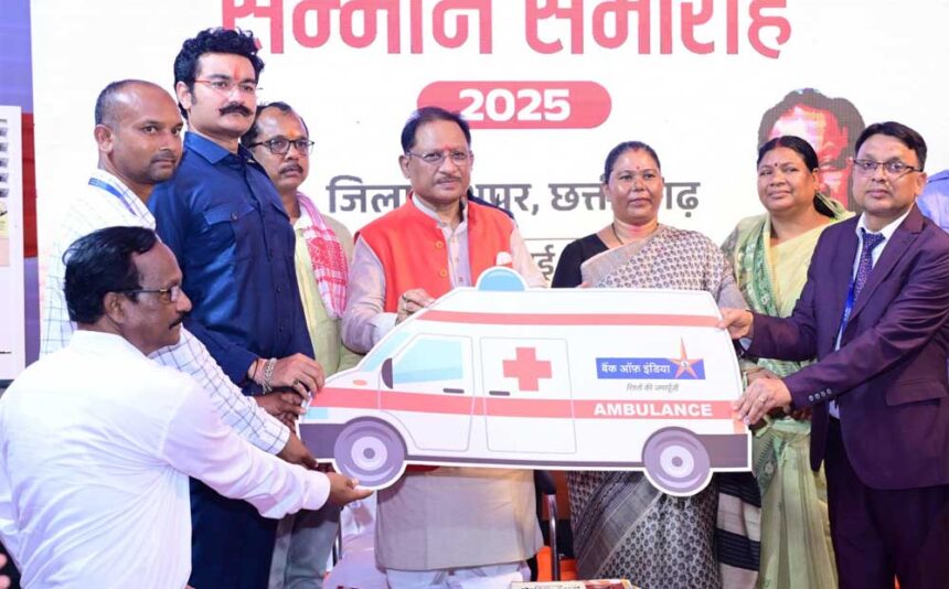 मुख्यमंत्री विष्णु देव साय ने आज जशपुर जिले के ग्राम बगिया स्थित कैम्प कार्यालय परिसर से अत्याधुनिक सुविधाओं से युक्त एम्बुलेंस को हरी झंडी दिखाकर रवाना किया। यह एम्बुलेंस बैंक ऑफ इंडिया द्वारा कॉर्पोरेट सामाजिक उत्तरदायित्व (CSR) निधि से प्रदत्त है, जिसमें बेसिक लाइफ सपोर्ट सिस्टम सहित अन्य उन्नत सुविधाएँ उपलब्ध कराई गई हैं।