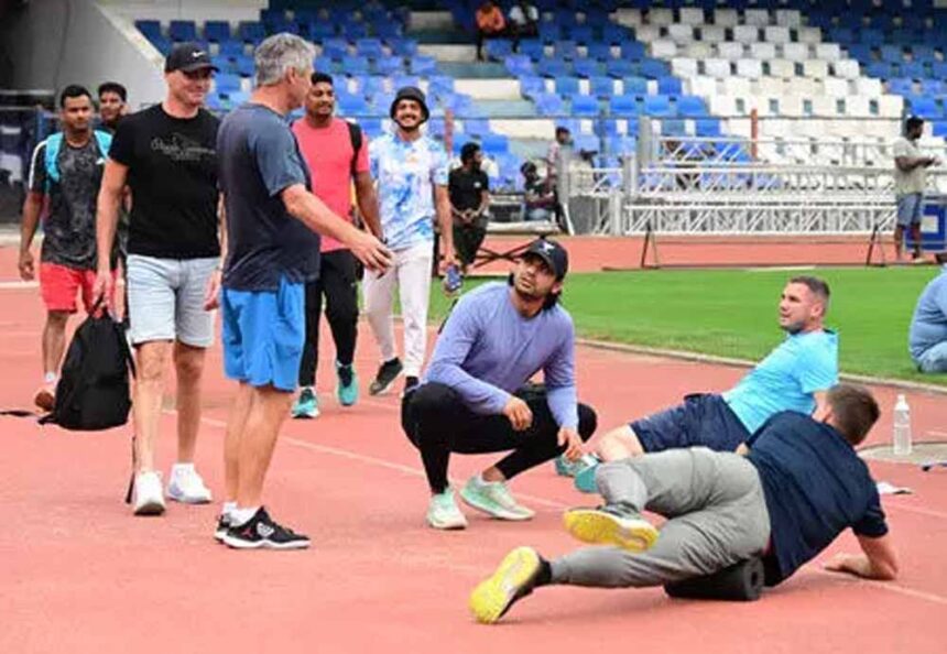 इससे पहले स्टेडियम में युवा खिलाड़ियों ने साइड ग्राउंड पर अभ्यास किया, जिससे स्टेडियम में ऊर्जा का संचार हुआ। स्टैंड में स्कूली बच्चे अंतर्राष्ट्रीय सितारों की एक झलक पाने के लिए बेसब्री से इंतजार करते दिखे।