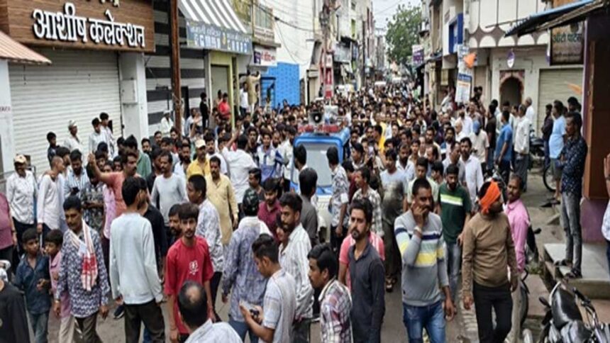 मोहर्रम के जुलूस के दौरान सोशल मीडिया पर वायरल हुए वीडियो से रतलाम जिले के सैलाना में तनाव की स्थिति पैदा हो गई। सोमवार सुबह हिंदू संगठनों ने विरोध जताते हुए नगर के बाजार बंद करवा दिए। लोग चौराहे पर बैठकर सुंदरकांड पाठ करते हुए आरोपितों पर कार्रवाई की मांग कर रहे हैं। एसडीओपी नीलम बघेल, थाना प्रभारी सुरेंद्र गडरिया समेत पुलिस बल मौके पर मौजूद हैं।
