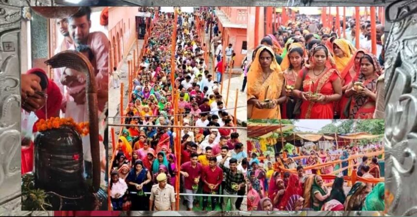 उत्तराखंड के हरिद्वार में सावन माह के पहले सोमवार को दक्षेश्वर महादेव मंदिर में पूजा-अर्चना के लिए श्रद्धालुओं की भारी भीड़ उमड़ पड़ी। भक्त शिवलिंग पर जलाभिषेक कर प्रभु का आशीर्वाद प्राप्त कर किए। इस दौरान पूर अंचल भगवान शिव के जयकारों से गूंज उठा।