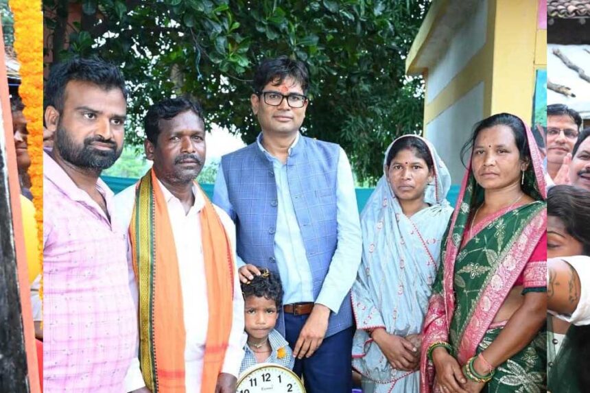 वित्त मंत्री ओ.पी.चौधरी रायगढ़ प्रवास के दौरान लैलूंगा के कुर्रा गांव में निवासरत विशेष पिछड़ी जनजाति के बिरहोर परिवारों के बीच पहुंचे। यहां उन्होंने सुकनी बिरहोर के पीएम आवास का गृह प्रवेश कराया और नए मकान की पूरे परिवार को बहुत बधाई और शुभकामनाएं दीं। उन्होंने परिवार के नन्हें बच्चे दिलीप बिरहोर से ही गृह प्रवेश का फीता कटवाया।